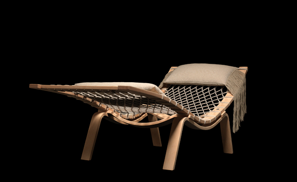 Tout comme la Flag Hayard, Wegner pousse l’idée du cordage tendu sur un cadre, cette fois en bois contrairement au cadre métal de la Flag, pour obtenir une assise entre le hamac et la chaise longue et mieux suspendre l’utilisateur dans l’espace.