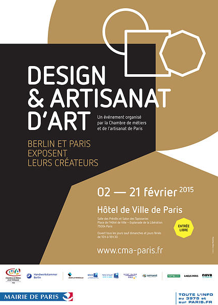 Pendant 3 semaines, les salons de l’Hôtel de Ville de Paris accueilleront une exposition de 70 créateurs d’artisanat d’art Franco-Allemand,organisée par la Chambre de métiers et de l’artisanat de Paris en partenariat avec la Chambre des métiers de Berlin et avec le soutien de la Ville de Paris. cette exposition, célébrera les métiers d’art, le design, la créativité : mobilier, luminaire, objets déco.