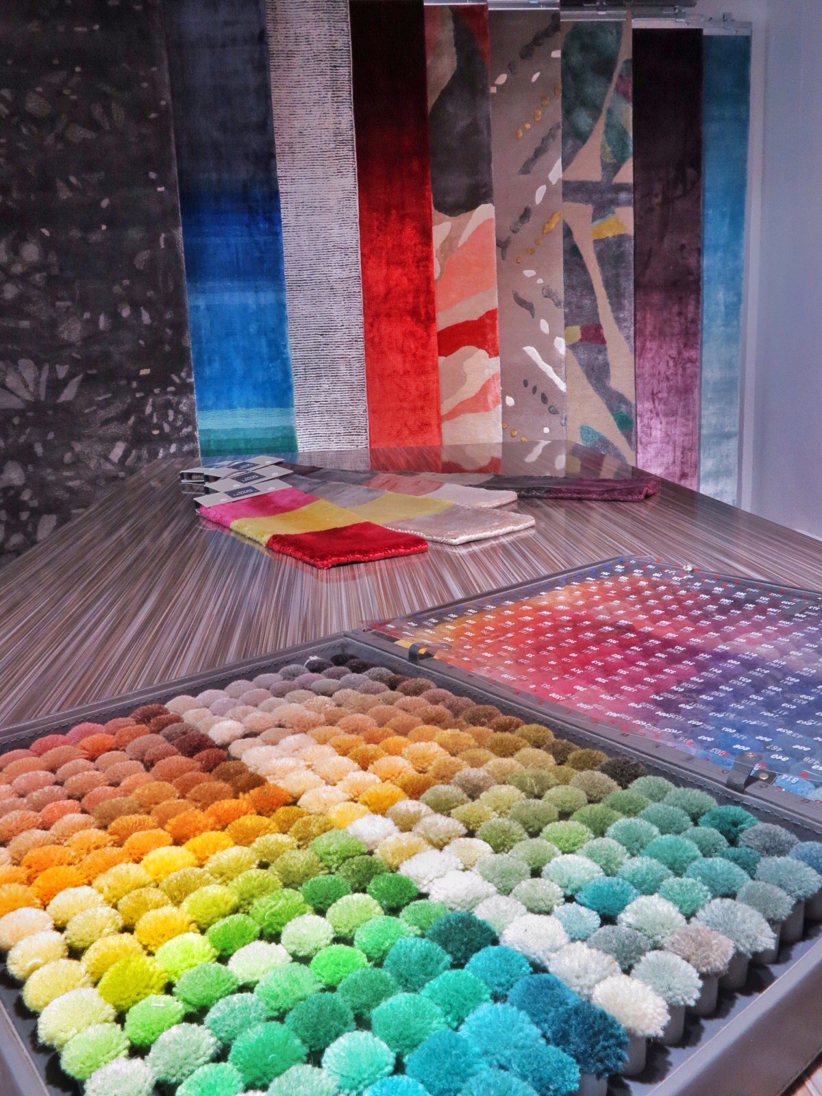 Au rez-de-chaussé, les tapis sont exposés comme des toiles tendues à même le mur ou sur de grands rails coulissants ainsi les 80 références sont mis en valeur tous les quinze jours grâce à une nouvelle mise en scène.