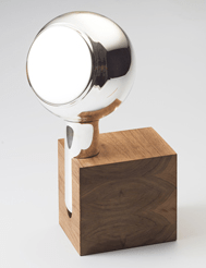 Miroir « Yve » de Maarten Baptist, Verre soufflé argenturé avec base en noisetier ou chêne massif, L 17 x H 290 cm, Th Manufacture