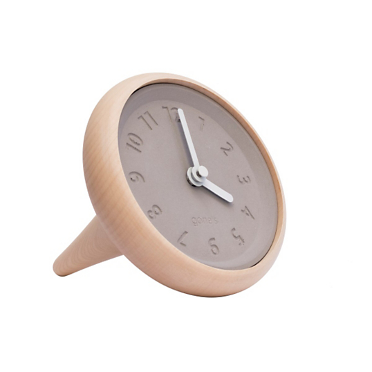 Horloge « Toupie » . Au fur et à mesure que le temps passe, ses aiguilles viennent équilibrer les chiffres pour qu’ils retrouvent leur place traditionnelle. 89€, Fleux